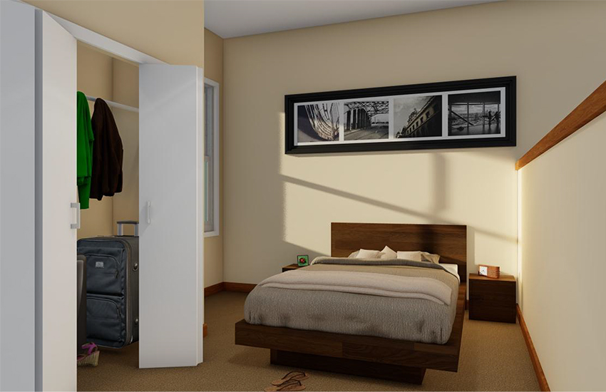 Bedroom areas are large enough to accommodate a king size bed and dresser.